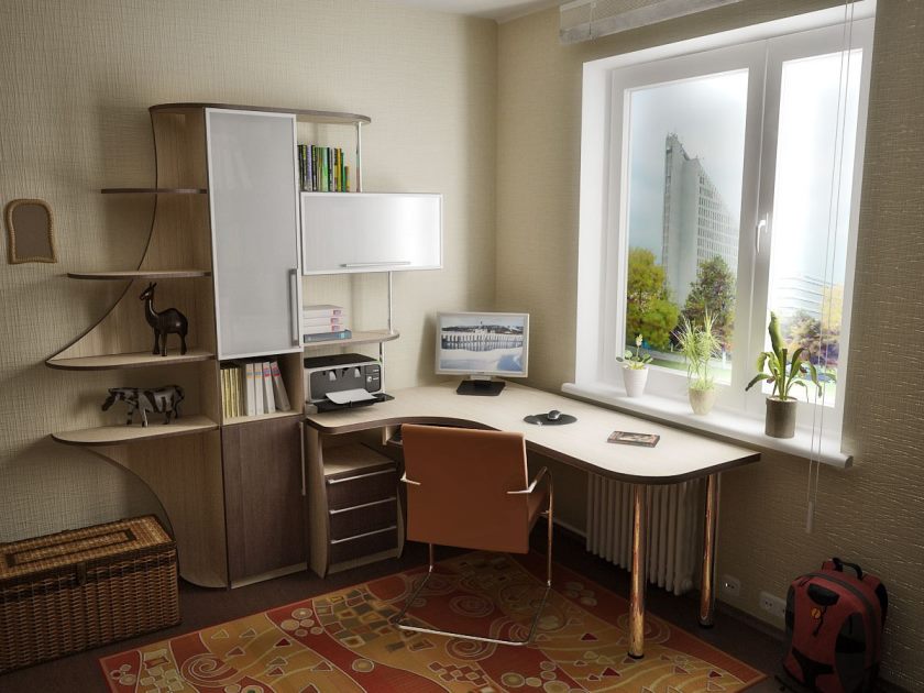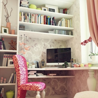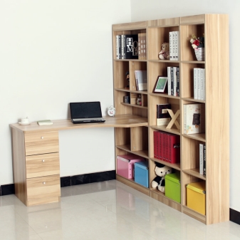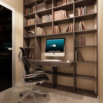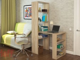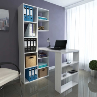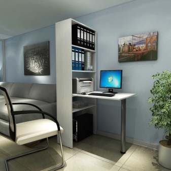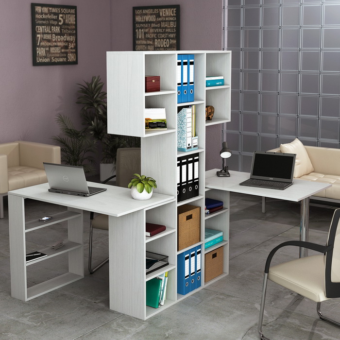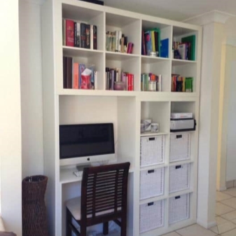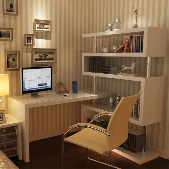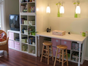Pour diviser la pièce en zones, vous pouvez utiliser l’option avec un casier de division et une étagère pour les documents. Ce modèle pas besoin de la placer à la fenêtre, mais plutôt au milieu de la pièce. Une telle étagère fermée, par exemple, séparera la zone de travail de la zone de repos. Il est souhaitable que la production a été utilisée matériau épais.
