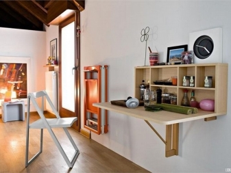Les conceptions avec le pliage, avec intégré et avec une table coulissante - c'est une solution moderne. Vous pouvez choisir le modèle le mieux adapté à votre pièce. Aujourd'hui, les modèles de style techno avec une table d'appoint sont de plus en plus populaires. Dans ceux-ci, la table est placée sur le côté, ce qui permet de gagner de la place dans certaines pièces non standard.