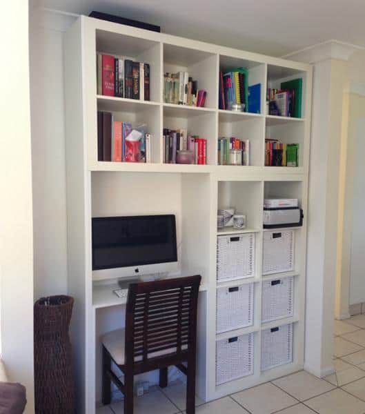 Si vous avez choisi un rayonnage haut et assez large, il peut vous servir de bibliothèque et de lieu de présentation des souvenirs.