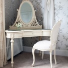 L'un des paramètres les plus importants est la taille du miroir, car les options plus grandes sont beaucoup plus pratiques à utiliser. Toutefois, leur installation dans des conditions d'espace restreint ne fonctionnera pas.Le treillis est une excellente option qui vous permet de vous regarder non seulement de l'avant, mais aussi des côtés. Si une chaise n’est pas proposée avec la coiffeuse d’angle, elle devra être achetée séparément. Il devrait être combiné non seulement avec ce meuble, mais également avec d'autres objets d'intérieur.