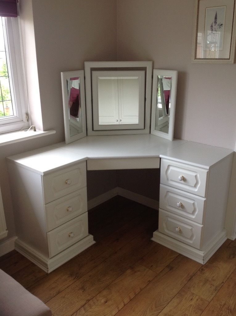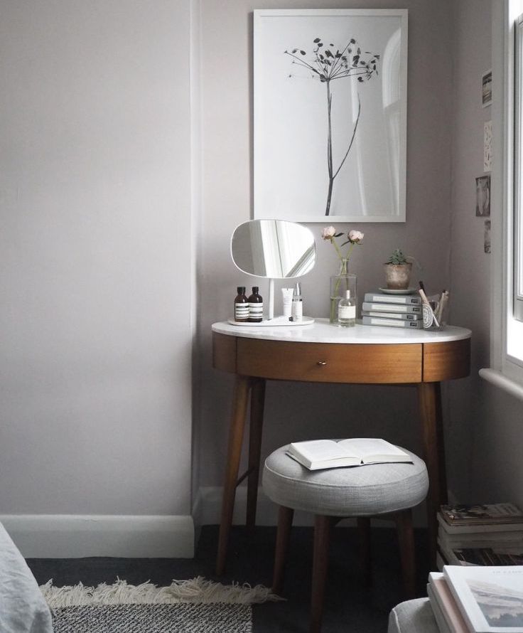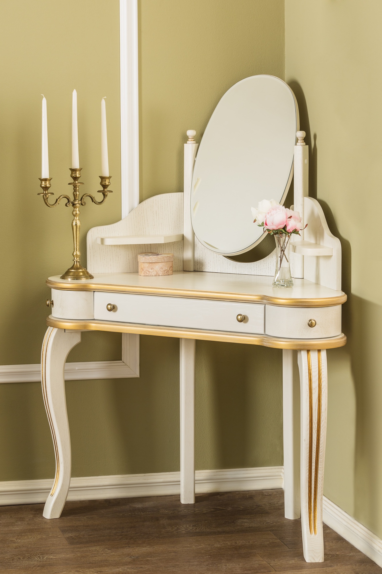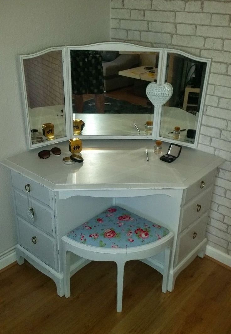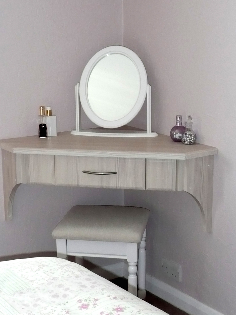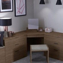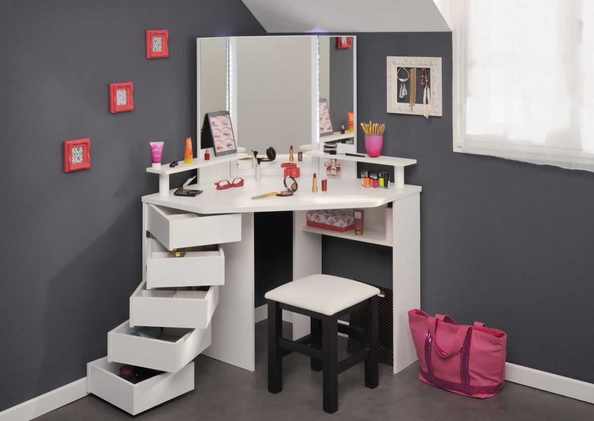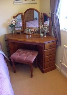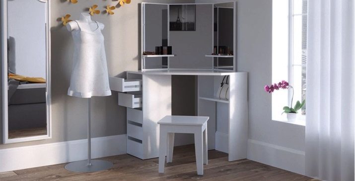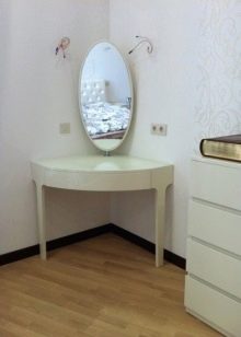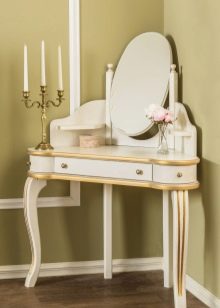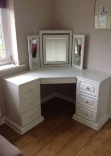 La coiffeuse d'angle est l'un des objets les plus recherchés dans la chambre à coucher. Il prend peu de place, mais il est également idéal pour prendre soin de soi-même confortablement.