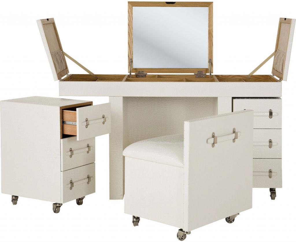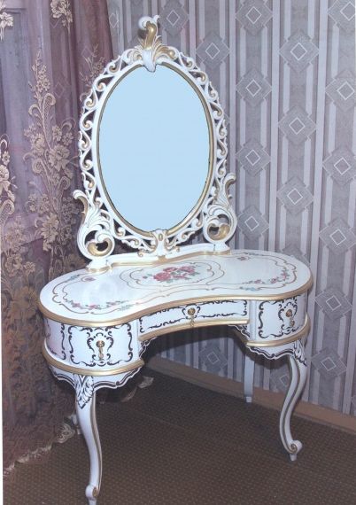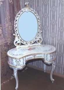 - Métal Le cadre de la coiffeuse doit obligatoirement être en acier ou en bronze. Sinon, après un certain temps, le produit commencera à se déformer, à perdre son aspect attrayant et à cesser d’exercer ses fonctions directes. En outre, tous les éléments forgés sont en métal, qui font partie intégrante de styles tels que la Provence, le néo-baroque et les styles modernes. Si l'intérieur est décoré dans un style high-tech, vous pouvez acheter des tables avec des éléments en métal chromé;