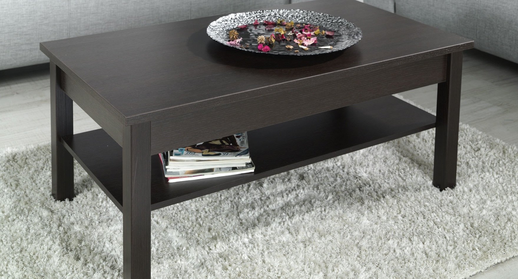 - Grands modèles - Il s’agit de tables basses d’une hauteur comprise entre 46 et 60 cm et d’une largeur comprise entre 61 et 85 cm.Vous pouvez parfois trouver des structures avec un plateau d’une largeur maximale de 1 m.