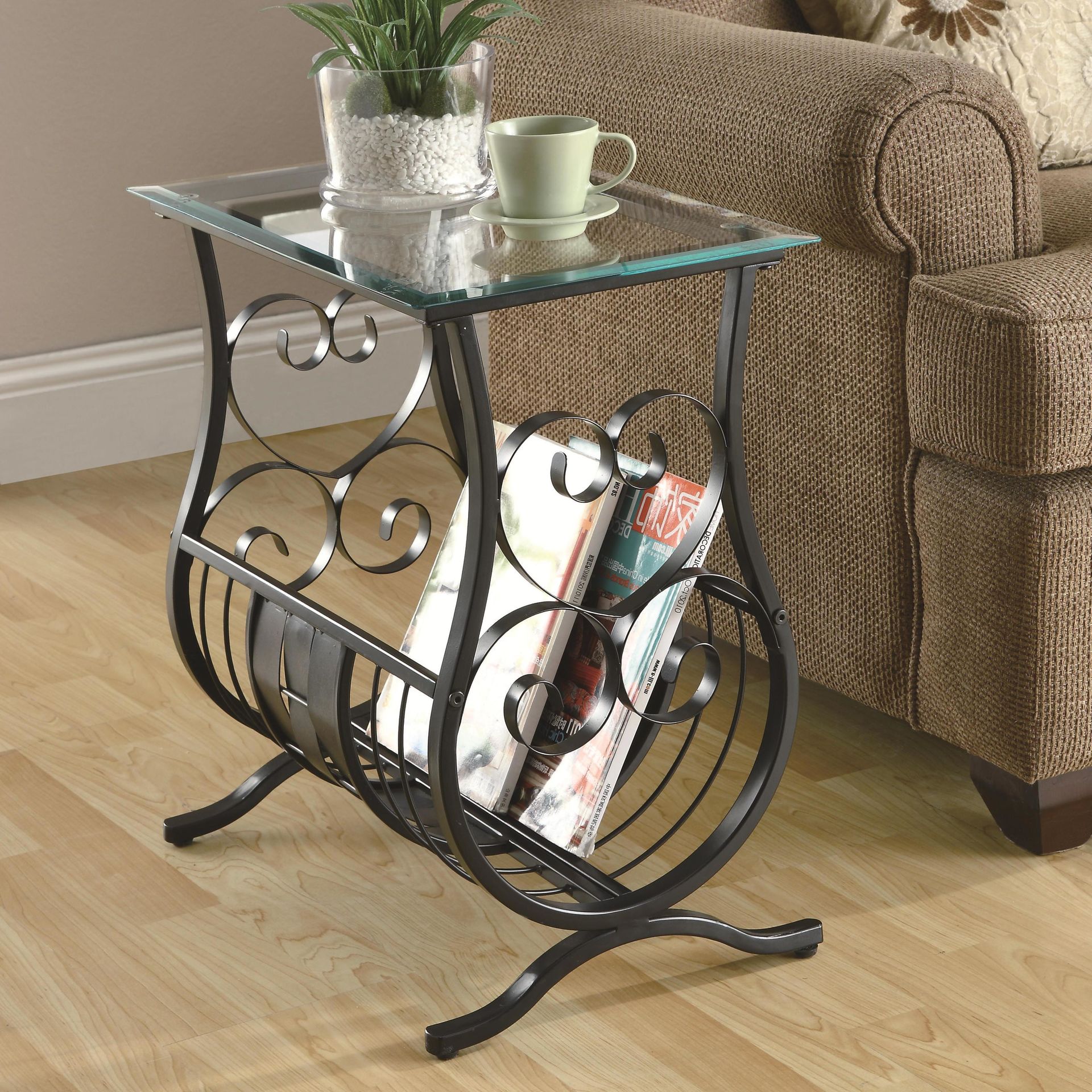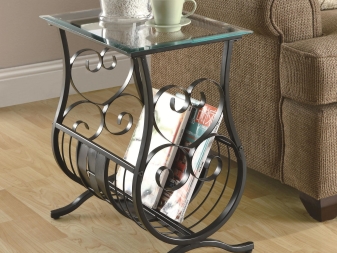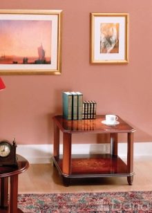 La fonctionnalité de ce mobilier est incroyablement diverse. Vous pouvez mettre une table dans le salon, où elle servira de support pour des magazines, un vase avec des fleurs, des objets de décoration, des objets de collection et tout ce que vous souhaitez. Le meilleur endroit pour placer ce meuble à côté du canapé. Donc, à la surface, vous pouvez plier la télécommande du téléviseur et tout ce que vous voulez toujours avoir sous la main. Vous pouvez également y boire du thé avec des invités.