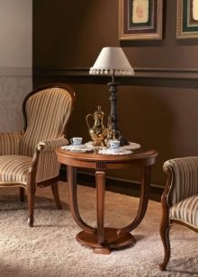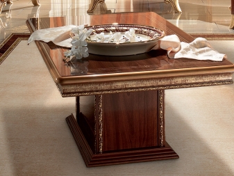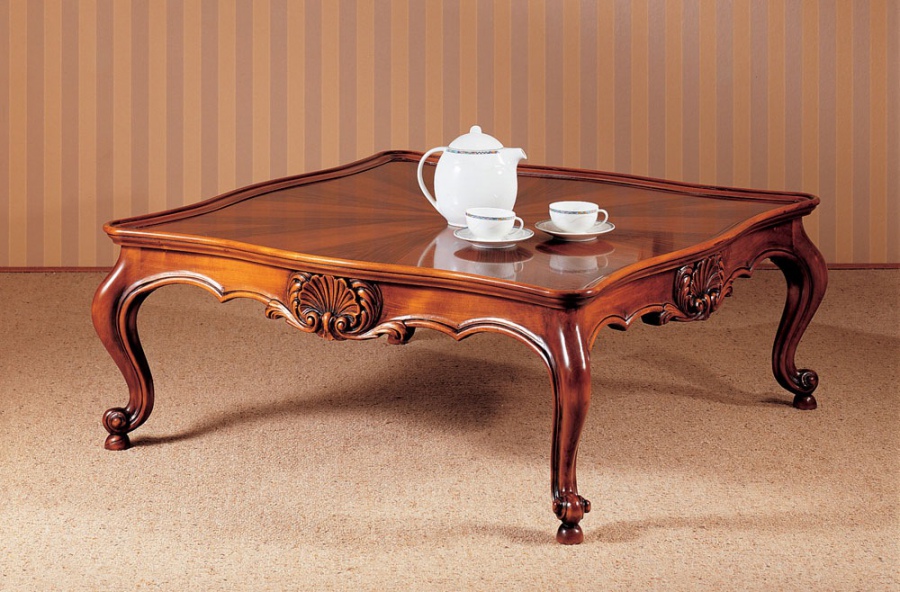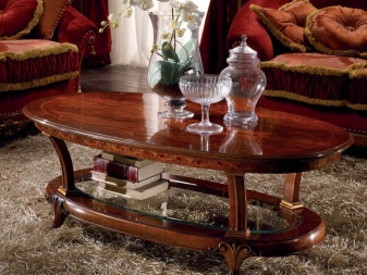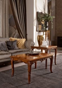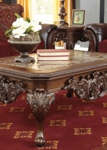 Les magasins modernes proposent un grand choix de tables basses pour intérieurs classiques, fabriquées à partir de divers matériaux. Mais la matière première la plus populaire pour ces meubles est toujours le bois. Les races les plus courantes pour la fabrication de meubles: chêne, noix, wengé, sycomore, cerisier, makasar, mangue et autres. Ce matériau naturel présente de nombreux avantages. Il est écologique et absolument sans danger pour l'homme et l'environnement. Les couleurs et la texture de cet arbre sont uniques et incroyablement belles.