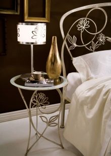 S'il y a un fauteuil confortable et une lampe de sol à côté, vous serez très à l'aise pour lire vos livres préférés ou travailler sur un ordinateur portable.Même sur une telle table, il est très pratique de ranger les produits cosmétiques lorsqu'il n'y a pas de coiffeuse spéciale dans votre chambre ou d'y mettre des lunettes, un téléphone, des bijoux.