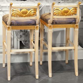 Look intéressant et tabourets de bar dans un style classique. Si vous avez la possibilité d’équiper le bar de la salle, assurez-vous de l’utiliser. Cela change la salle et en fait un endroit idéal pour des réunions amicales et des soirées agréables.