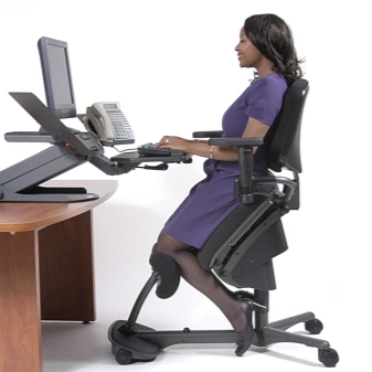 Les modèles de ce type n'ont souvent pas de dos et suggèrent de fixer les genoux dans une position correcte pour le dos et les articulations. La partie de la hanche est avancée et vous permet de fournir la déviation nécessaire dans le bas du dos pour une posture lisse. Lorsque l'emplacement crée une charge maximale sur les genoux, ce qui est un inconvénient de ce modèle. Pendant longtemps, ça ne marchera pas.