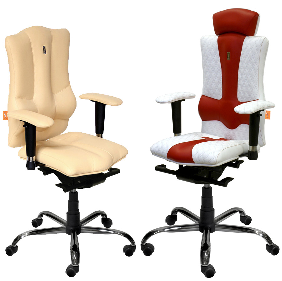 L'une des options d'achat réussies est une chaise orthopédique, à la fois utile et confortable. Looks modèles luxueux avec sellerie en cuir. Ils s'intègrent parfaitement dans l'espace de bureau. S'asseoir sur eux est très confortable, bien que pour certains utilisateurs, la surface semble glissante.
