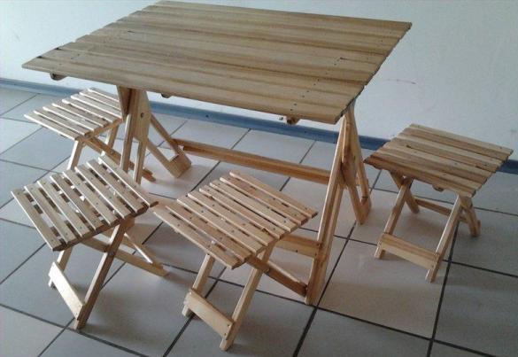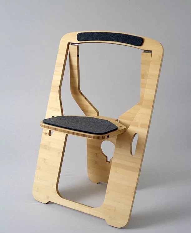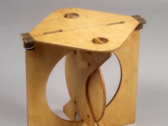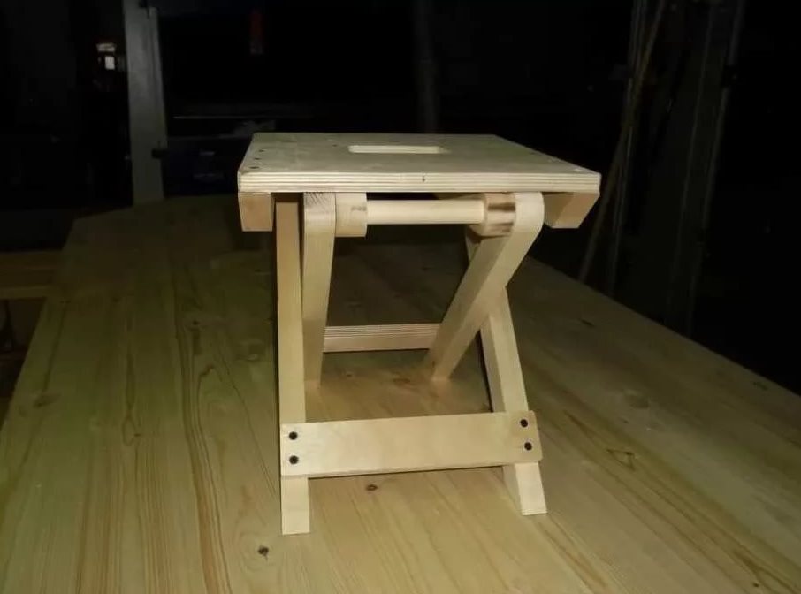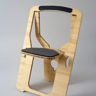 L'avantage de ces chaises est qu'elles sont extrêmement simples à fabriquer et encore plus compactes.Même un ensemble de telles chaises peut facilement se cacher sous le lit et on peut accrocher l'œillet dans le garage. Pour la fabrication d'un tel modèle, le dessin n'est pas nécessaire, et parmi les matériaux dont vous aurez besoin: