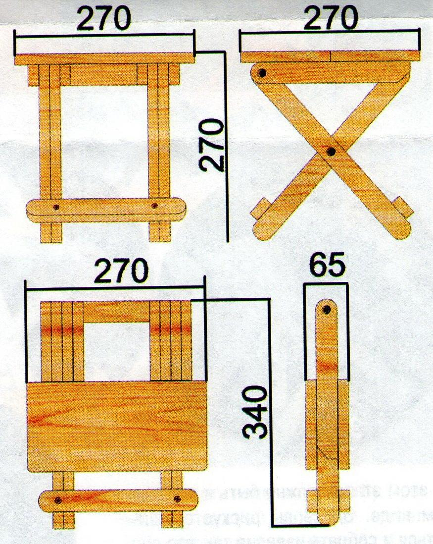 Des compétences spéciales en menuiserie pour cette entreprise ne seront pas nécessaires. Vous devez juste savoir comment manipuler une scie à métaux et tenir un exercice entre vos mains. Chaise pliante en cours de dessin, en tant que designer.