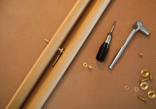 La prochaine étape importante est la fixation des barres. Les barres moyennes dépendront de la manière dont la chaise se pliera et se déroulera. Les barres du milieu sont placées de la même manière que les grandes extérieures. Une barre est fixée à la barre intérieure et la seconde à la barre transversale extérieure.