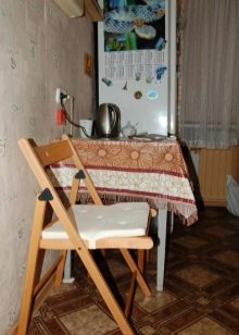 - Dépanneur. Les chaises pliantes peuvent être pliées ou dépliées. Si elles ne sont pas nécessaires, ces chaises peuvent être facilement et rapidement placées dans une position compacte et simplement retirées pendant un certain temps. Dans le même temps, il n’est pas nécessaire de chercher où les placer pour les stocker. Les chaises pliées peuvent facilement se glisser sous le lit, dans le placard, sur la mezzanine, sur le balcon ou la loggia.