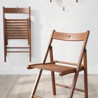 - Modèle de chaise pliante "Terie" est une option très intéressante et pratique. Cette chaise est en bois, a un look noble et élégant.À l’arrière du modèle, un trou permet à une chaise pliée d’accrocher un tel fauteuil à un clou dans le placard ou à un crochet dans le placard. Ce modèle est très demandé en raison de son design discret, de ses fonctionnalités, de sa durabilité et de sa compacité.