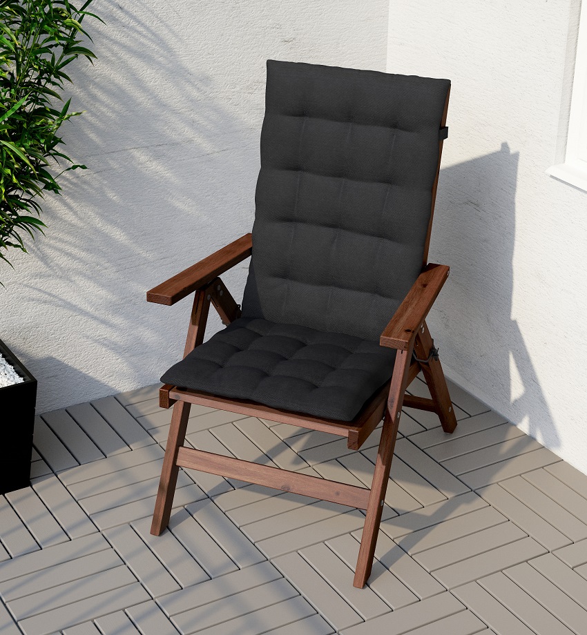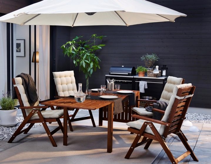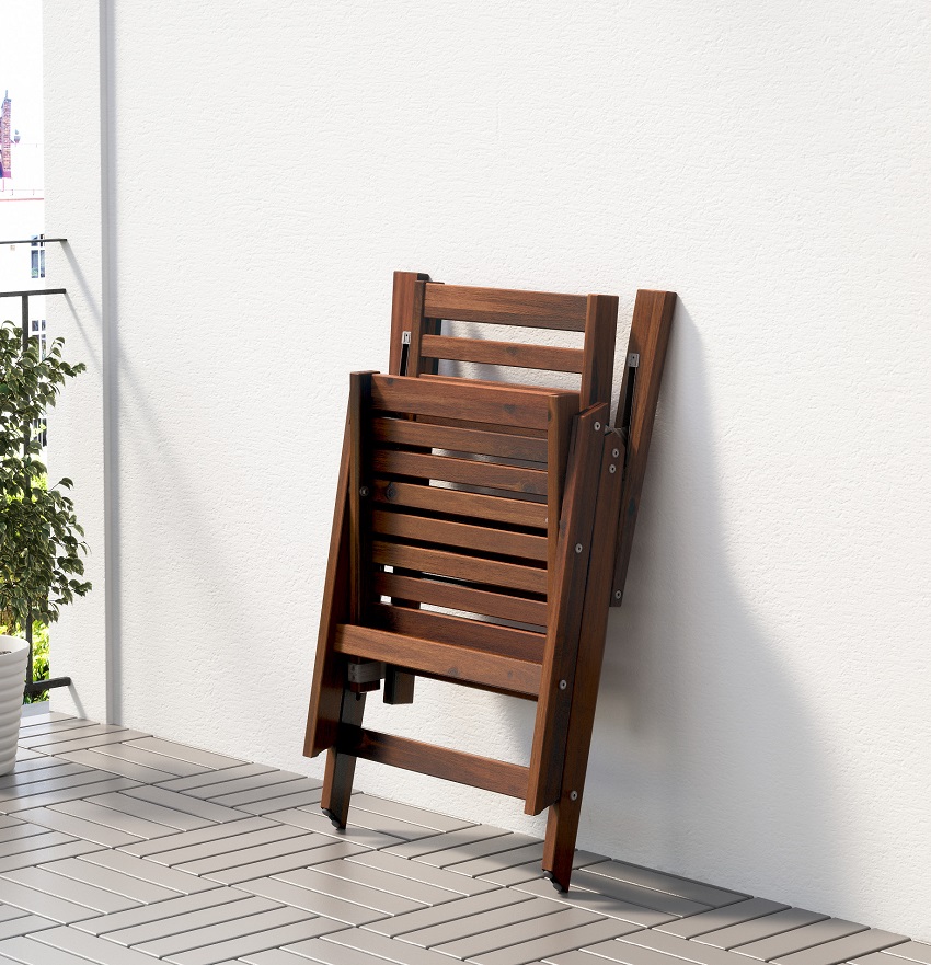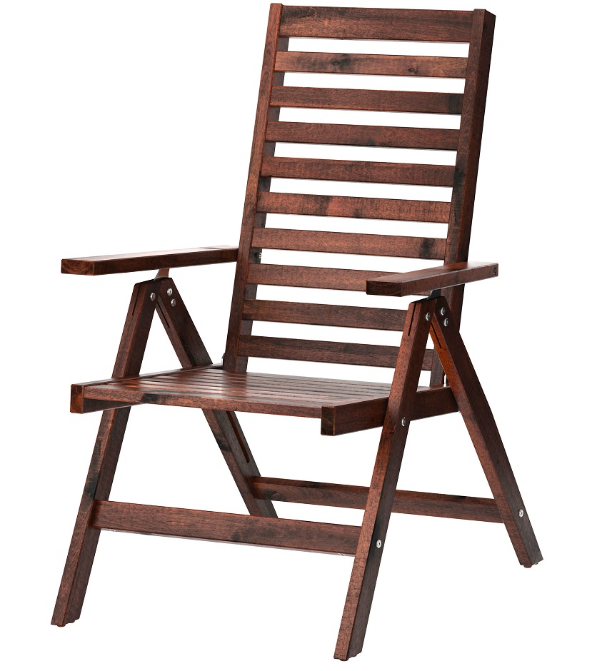 - Chaises pliantes avec dossier. Bien sûr, la capacité de se pencher confortablement sur le dos sur une surface d'appui pendant un thé ou une conversation agréable autour d'un verre de vin est un avantage considérable et souhaitable.De nombreux modèles de chaises pliantes Ikea sont équipés de dossiers confortables en divers matériaux.