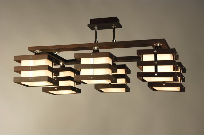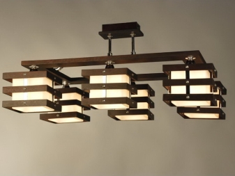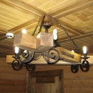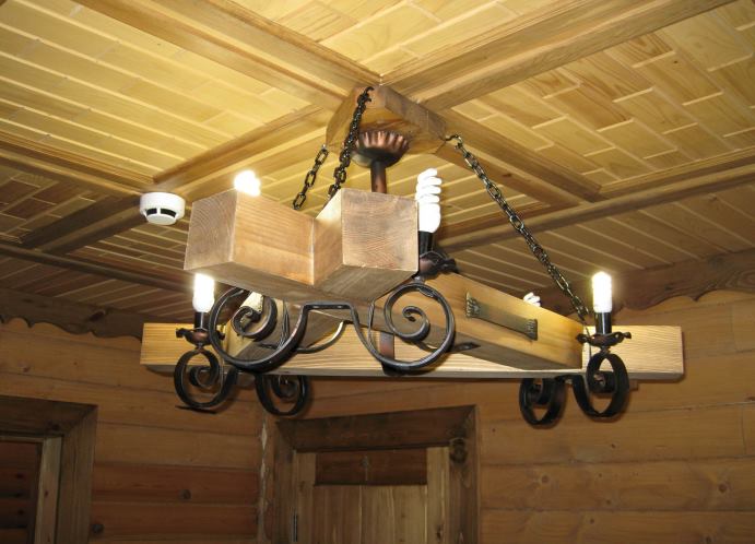 - Moderne. Ces lampes sont créées grâce à une combinaison avantageuse de bois et d’éléments forgés (caillebotis, éléments de volume ou motifs originaux);