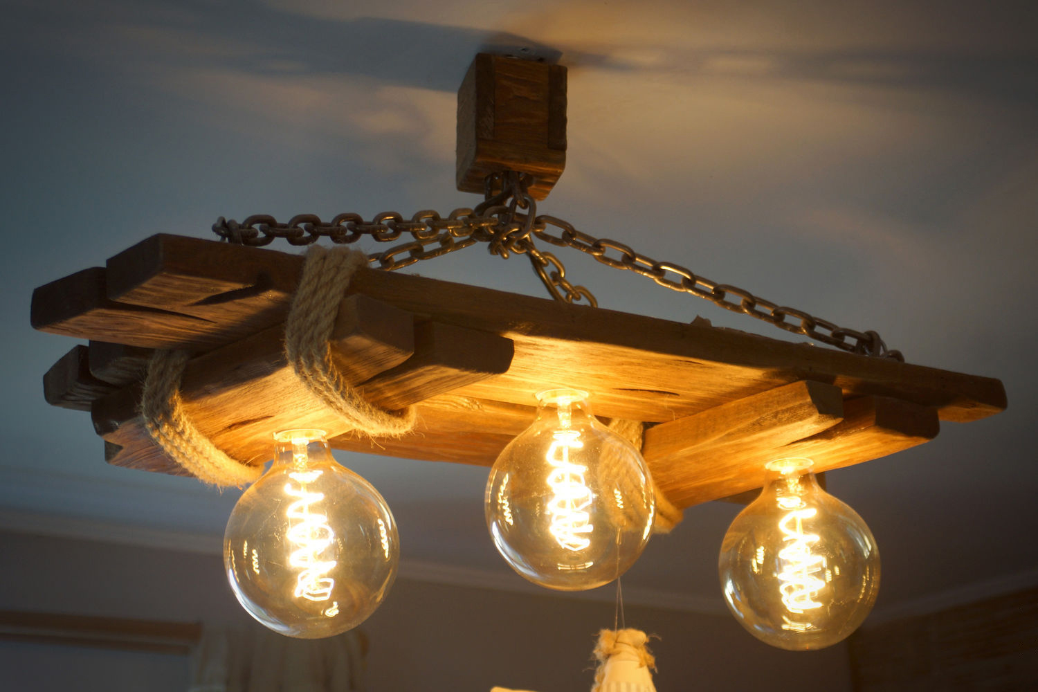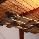 - Faisceau solide avec des bougies. Tout ingénieux est simple! La conception de ce modèle est une autre confirmation de ce principe. La lampe est une bûche solide, fixée avec des chaînes. Ces produits sont parfaits pour la décoration du salon, de la salle à manger ou de la chambre. Dans la cuisine, une telle lampe aurait l'air trop encombrante;