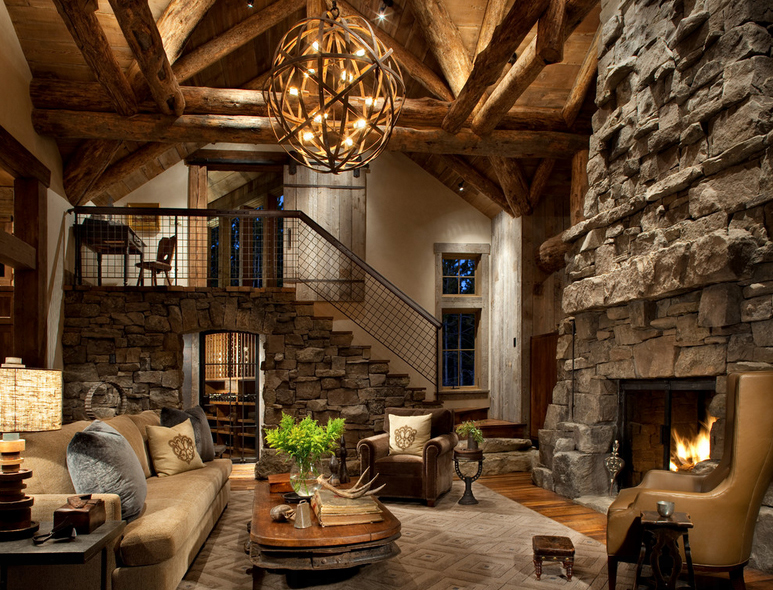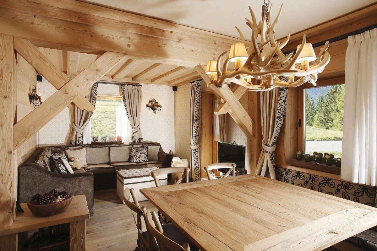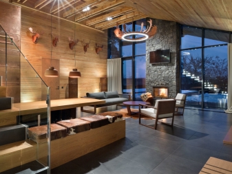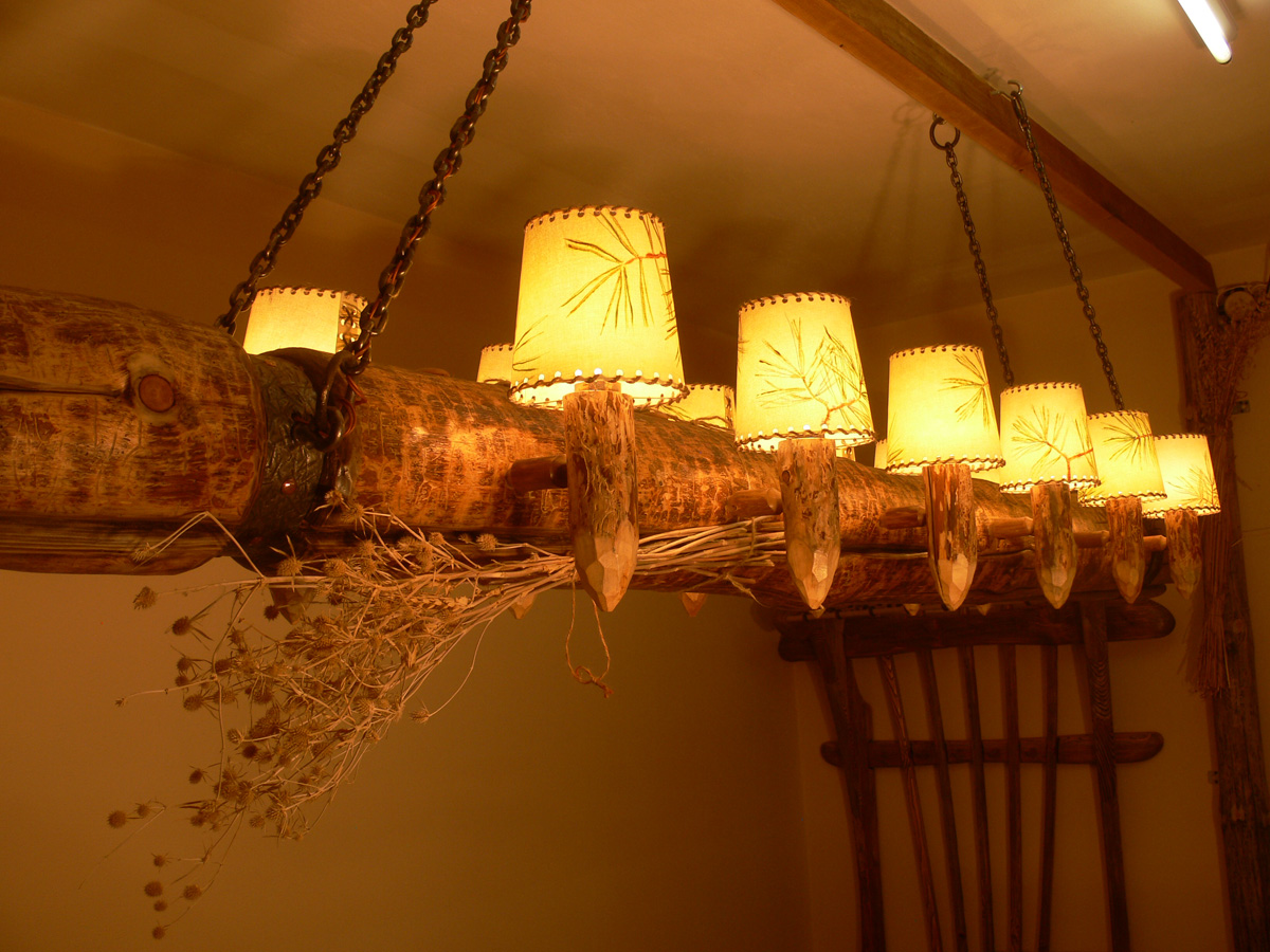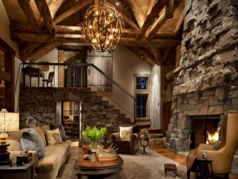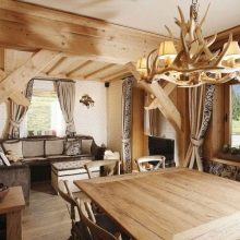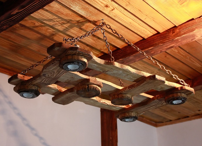 - Chalet. Pour créer des lampes en bois dans ce style sont utilisés exclusivement des matériaux naturels. Tout élément à l'intérieur du chalet est conçu pour souligner l'unité de l'homme et de la nature;