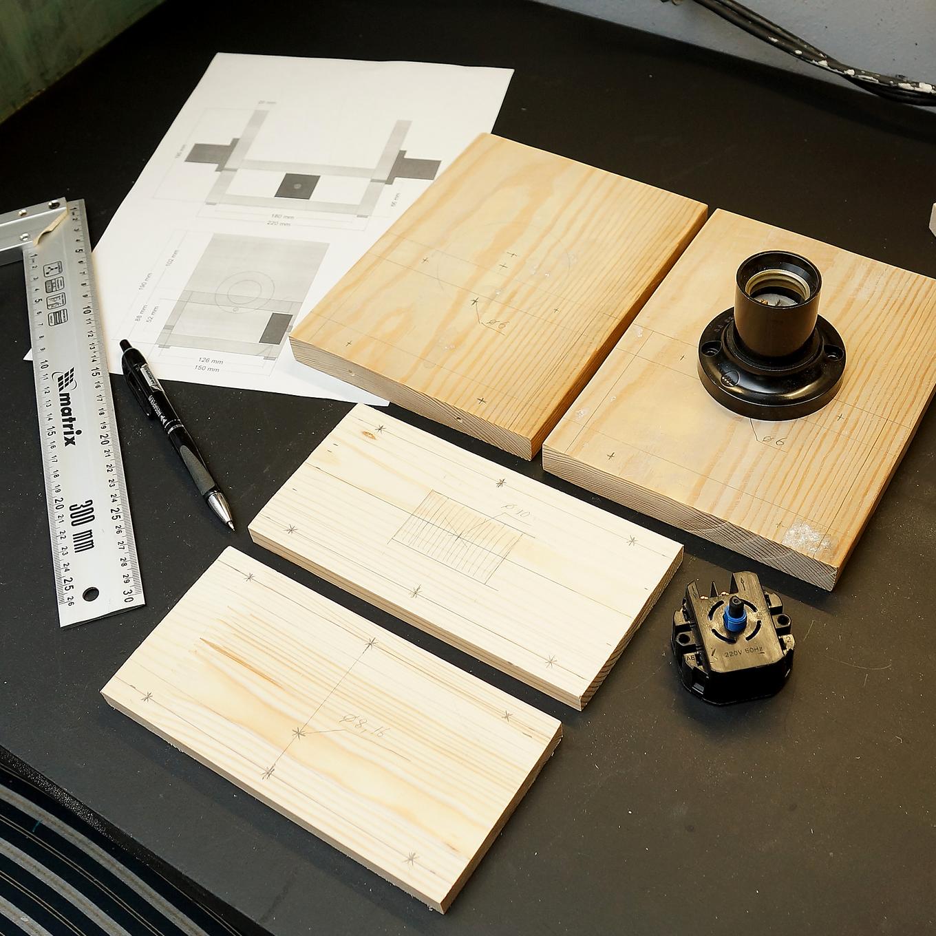 Tout d’abord, vous devez acquérir les outils nécessaires à ce type de travail, des solutions de traitement du bois et, bien sûr, le matériau source lui-même. Tout cela est en vente libre. Il est important de rappeler qu'il est nécessaire de traiter les détails de la future lampe, sinon un tel produit sera de courte durée.