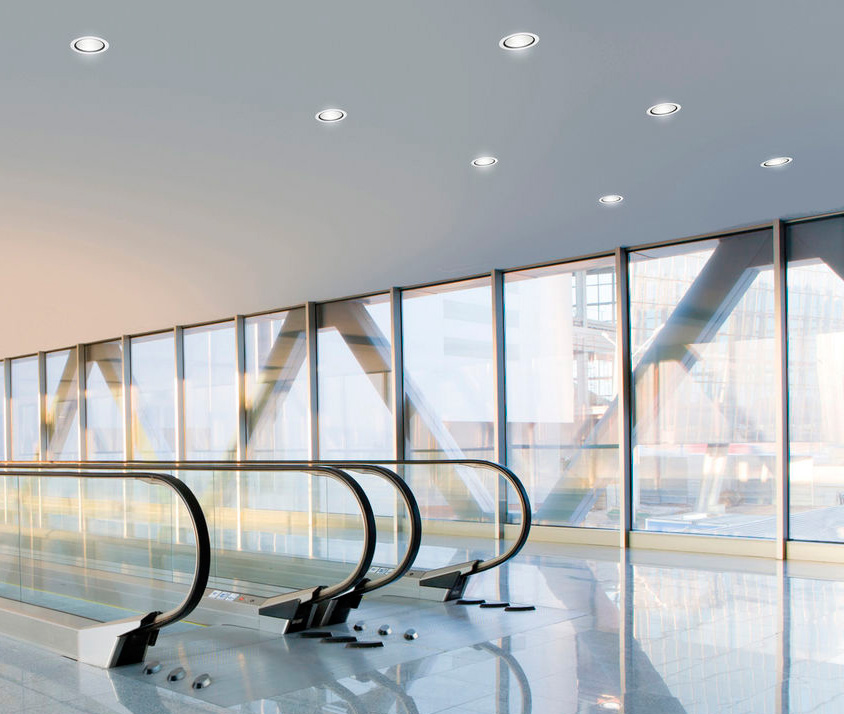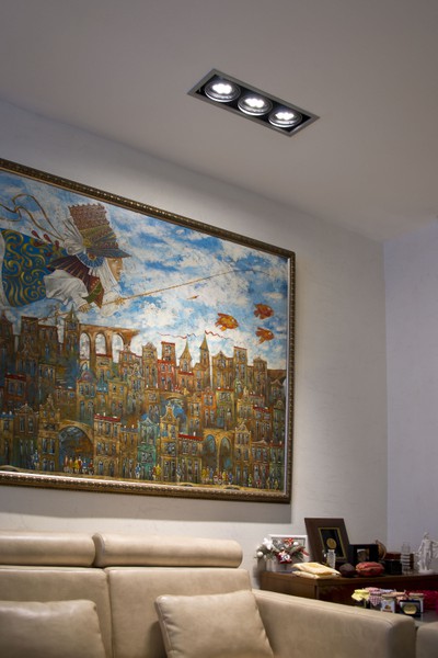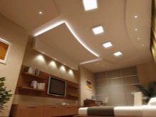 - Lumière encastrée Sa direction est plus étroite: il est principalement fixé au plafond sur des structures suspendues, composées de plaques de plâtre et de films de PVC (utilisés pour les plafonds tendus).