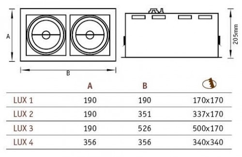 - Module unique - des lampes ponctuelles pour les structures de plafond suspendu (souvent des lampes encastrées);