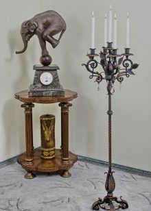 Une attention particulière devrait être accordée au candélabre. C'est le genre d'appareils qui utilisent des bougies au lieu d'ampoules. Souvent, ces modèles sont fabriqués dans des styles anciens qui vous permettent de les utiliser dans leurs intérieurs respectifs. Selon la méthode de fabrication, les lampes sont fabriquées à la main et en usine. Ce dernier type est particulièrement populaire, car le design de la lampe est presque unique. Mais le coût de telles modifications est beaucoup plus élevé que celui de leurs homologues estampés.
