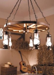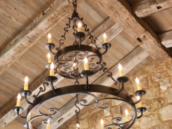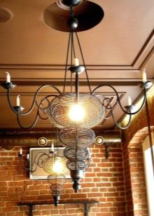 - Plafond. Ce type d'appareil est assez rare, car ils sont remplacés par des lustres en fer forgé. L'installation des luminaires est principalement réalisée à l'aide de systèmes de suspension spéciaux.