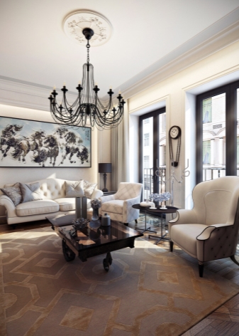 - Classique. Les lampes forgées complètent parfaitement les lustres raffinés à plusieurs niveaux. Cela vous permet de créer un agréable jeu de lumière et d'ombre, ce qui donnera à la pièce sophistication et chic.