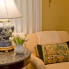 - Empire caractérisé par des formes claires, sculpturales. La base des lampes peut être faite de bois précieux et la couverture - de soie, de verre, de cristal, de porcelaine. Parmi les couleurs prédominantes - bleu, noir, écarlate, cramoisi, vert.