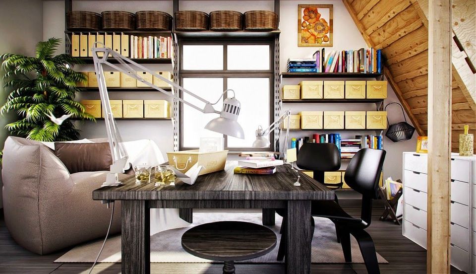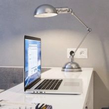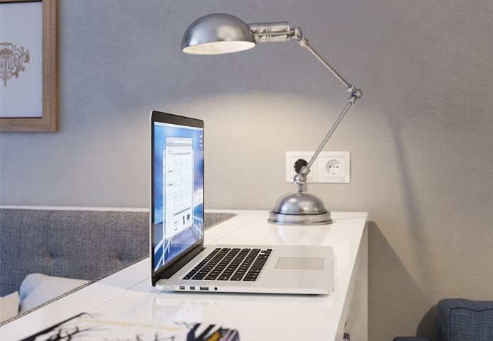 La meilleure option pour éclairer le lieu de travail est un plafond sphérique ou conique terne qui illumine le lieu de travail le plus confortablement possible. Cette règle est valable pour un bureau où sont effectués les devoirs, pour le bureau d’une aiguilleuse ou d’un dessinateur, ainsi que pour la zone de travail du manucure. La jambe d'une telle lampe est souhaitable sur les charnières afin que vous puissiez ajuster la hauteur de la lampe et l'angle d'inclinaison.