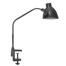 - Sur la pince. Surtout, ce type de pièce jointe ressemble à la méthode consistant à fixer une meuleuse à l’ancienne sur le bord d’une table. Une partie du mécanisme est appliquée sur le dessus de la table par le haut, et la seconde est vissée du bas jusqu'à la butée jusqu'à ce que le bord du dessus de la table soit serré dans un étau. Si la base d'une telle lampe vous permet de la faire pivoter et de l'incliner à un angle différent, il s'agit du moyen le plus optimal pour installer une lampe fonctionnelle dans la zone de travail.