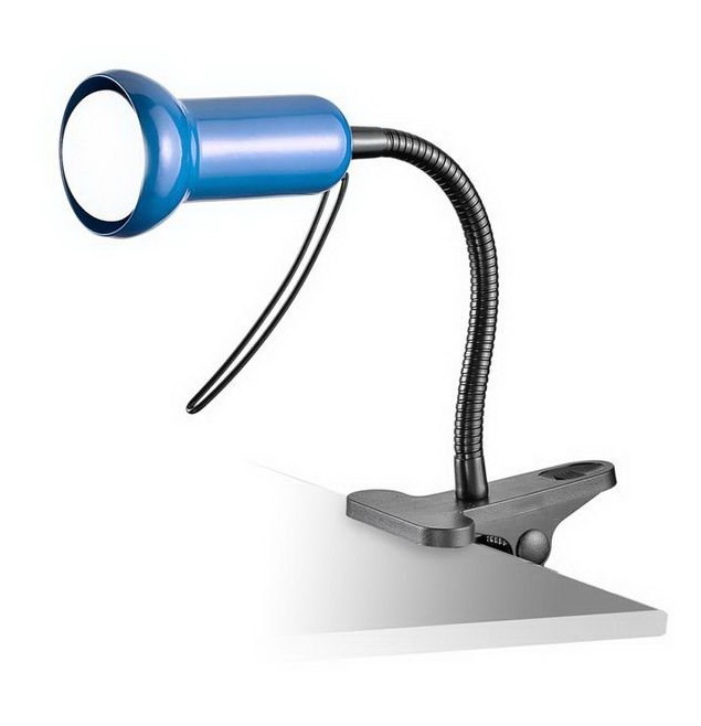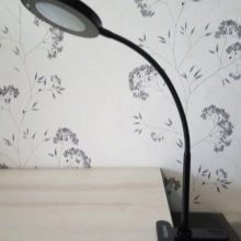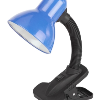 - Sur la pince à linge. Une telle monture est généralement présente dans les lampes assez légères. Leur confort est que vous pouvez fixer la lampe non seulement sur la surface latérale de la table, mais également sur l’étagère et sur tout rebord au-dessus de la table. Il est plus difficile de laisser tomber une telle lampe, mais vous devez faire très attention lorsque vous choisissez une pince à linge. Si elle n’est pas résistante, la lampe ne collera pas sur une surface inclinée;