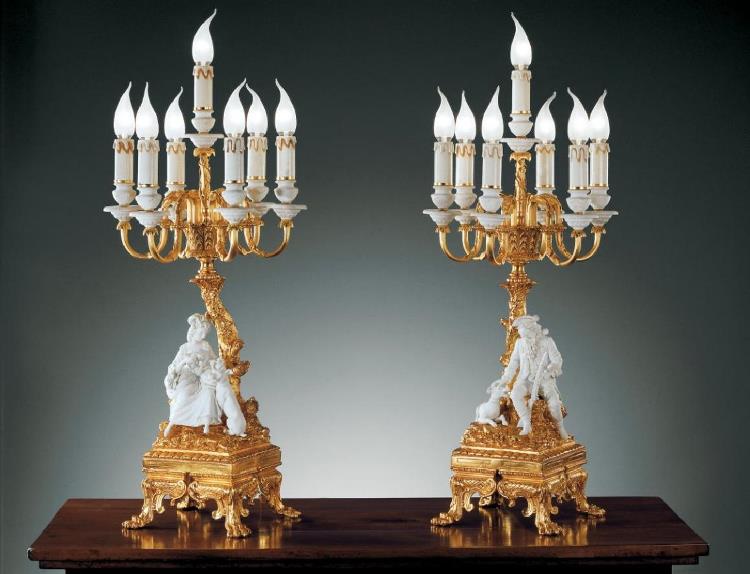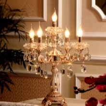 - Lampes à la Baroque caractérisé par la massivité, la pompe et la décoration excessive. Dans l'interprétation moderne, il peut s'agir d'un appareil à plusieurs niveaux d'abat-jour ou d'un girandol (chandelier à branches ramifié) doté de diodes électroluminescentes en forme de bougies.