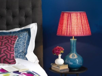 Rouge, rose, corail - couleurs accentuées ne nécessitant pas, en plus d'eux-mêmes, d'autres éléments décoratifs. Le même point de couleur vive peut être bleu, violet, jaune riche, émeraude, grenat. Les lampes de ces couleurs conviennent au salon et à la cuisine.
