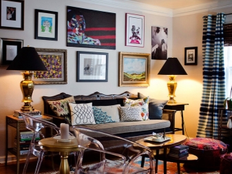 Les lampes originales avec des nuances lumineuses de forme irrégulière, diverses lampes de sol et des bougeoirs sont très populaires. Les lampes sur la pince à linge sont un élément décoratif intéressant, car elles peuvent être placées presque n'importe où et à n'importe quel angle, même à l'envers.