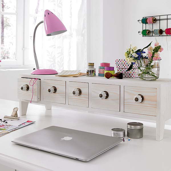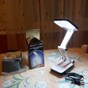 La lampe de travail doit être petite, transformable et discrète. Cependant, une lampe élégante n'est pas nécessairement ennuyeuse. Il peut être fabriqué sous une forme intéressante, par exemple une lanterne en papier chinoise à hauteur réglable, un couvercle transparent et rond avec une ampoule originale, une simple lampe avec abat-jour en plastique et des textiles sur un pied pliant complexe.