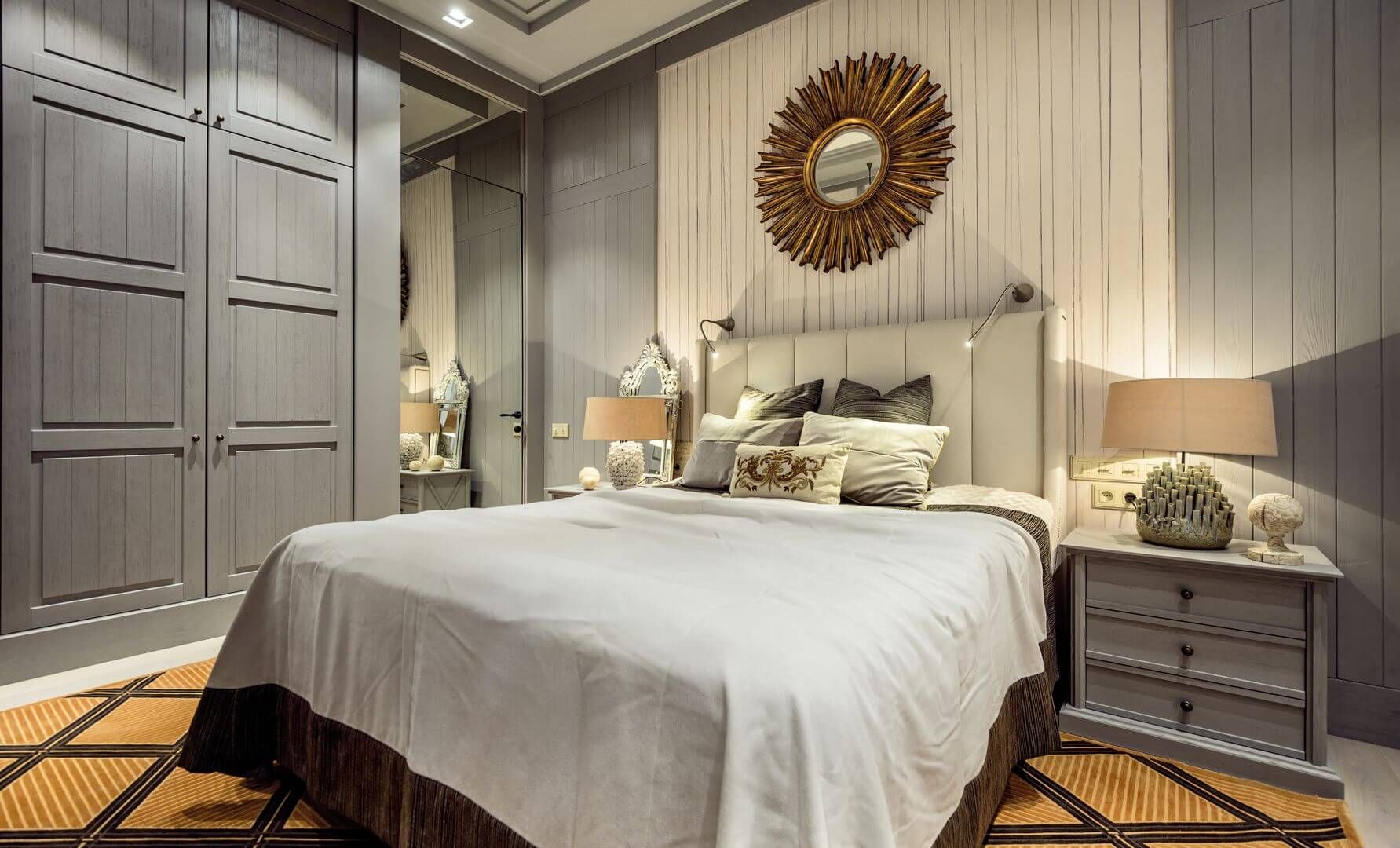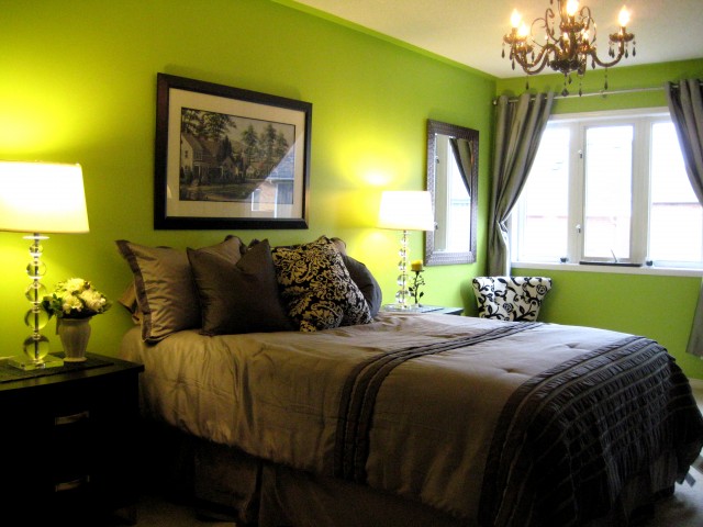 Dans la chambre à coucher, des options plus calmes sont nécessaires: lilas, jaune pâle, vert calme, vert clair et pêche.