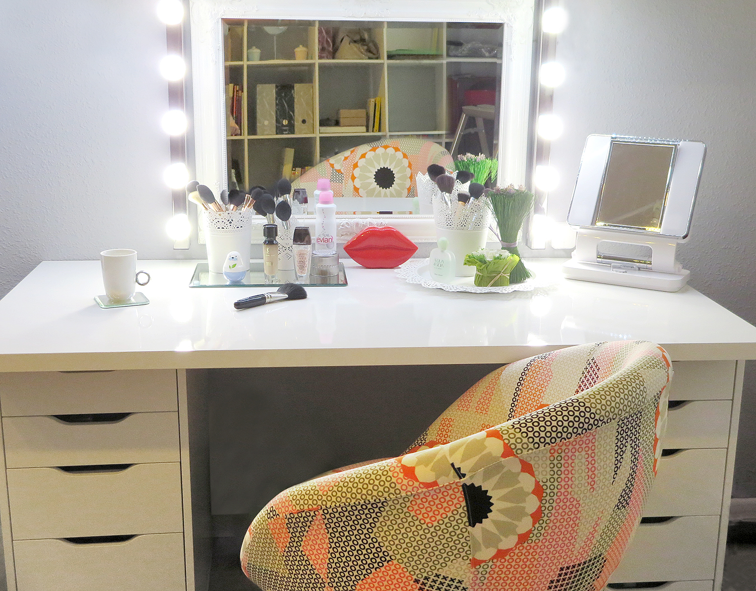 Un luminaire de coiffeuse ou de table de maquillage doit simultanément créer une lumière intense et douce, aussi proche que possible de la lumière naturelle. Il est préférable de s'attarder sur des modèles qui ne sont pas couverts de nuances et qui sont installés à hauteur des yeux de plusieurs côtés à la fois. Distance recommandée - 1 mètre, puissance - jusqu'à 100 watts. La solution optimale pour la coiffeuse est un miroir artistique déjà associé à des nuances mates,éclairer le visage sous tous les angles, ce qui permet d’éviter les ombres.