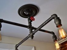 - Récemment, des appareils très populaires fabriqués des tuyaux de fer, des grues, des raccords. Il peut sembler que de tels dispositifs ne conviennent que pour le style loft,mais les concepteurs modernes parviennent à les intégrer dans presque tous les intérieurs modernes, faisant de ces produits la priorité des locaux.