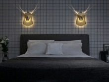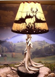 - Lampe de table est faite des cornes d'animaux. Au plafond, une silhouette est sculptée. Lorsque vous allumez l’abat-jour par les trous de celui-ci, il est projeté sur les murs et crée des motifs uniques.