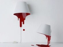 - Applique et lampe de table sont faites sous la forme d'une illusion. Bol renversé représenté avec de la peinture coulant dessus. Au début, il semble que la tasse soit suspendue dans les airs et ne repose sur rien du tout. Les lampes dans cet esprit gagnent en popularité parmi les acheteurs - certains modèles ressemblent au thé, au café et à d’autres liquides renversés.