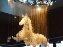 - Plafonnier fabriqué en cristal et en métal. Ici, les spots de plafond visent une composition de perles de cristal (sous la forme d’un cheval de course). Un tel objet d'art peut être une décoration du salon ou du bureau.