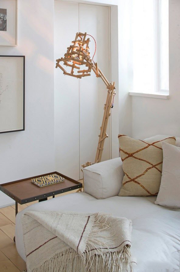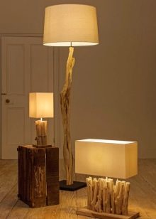 - Le bois naturel ajoute toujours un élément de nature à l'intérieur. Lampes dont la base est faite des branches, parfaitement adapté aux locaux en style écologique. Et cela peut être une lampe de sol ou une lampe de bureau.