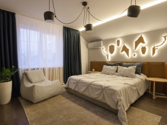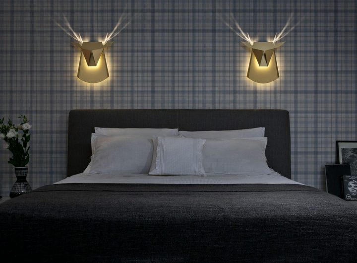 - Dans la chambre des lampes inhabituelles décorent les tables de chevet. Utilisez souvent le modèle mural original ou installez la lampe sur le sol.