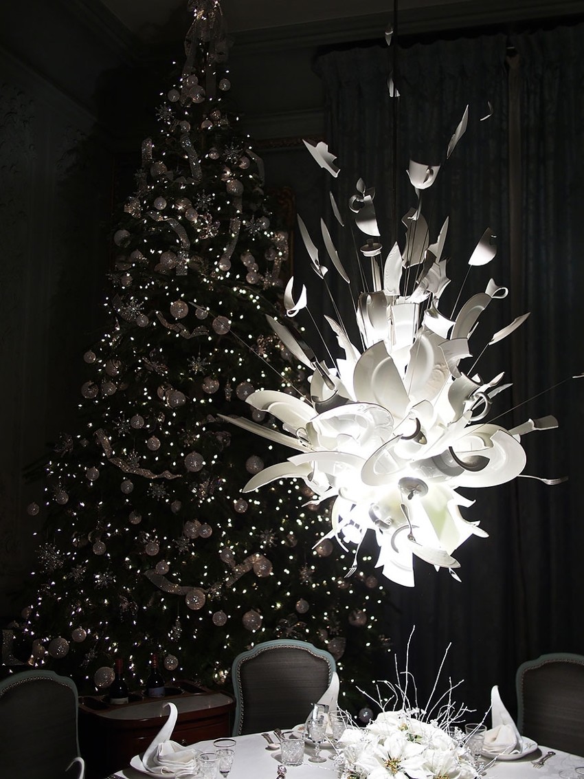 - Lustre en forme de plaques se brisant. Cet objet d'art a su capter toute la beauté du moment. Une excellente option pour éclairer la salle à manger ou le salon. À propos, un tel appareil convient également dans la cuisine.
