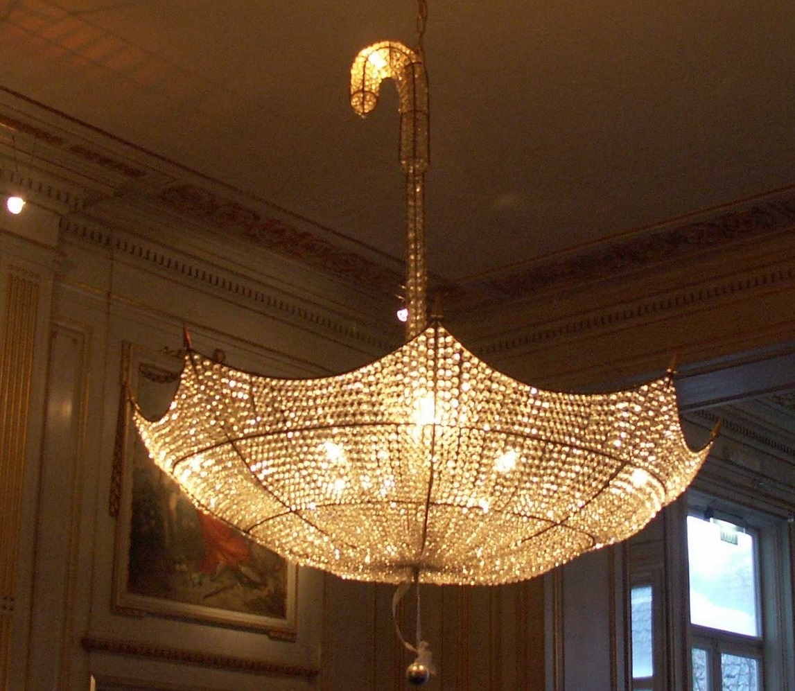 - Pour le couloir peut être un grand lustre, fait de cristaux de cristal (ce produit est comme un parapluie). Et il convient à la fois au style classique et au moderne. La règle principale est le bon goût.