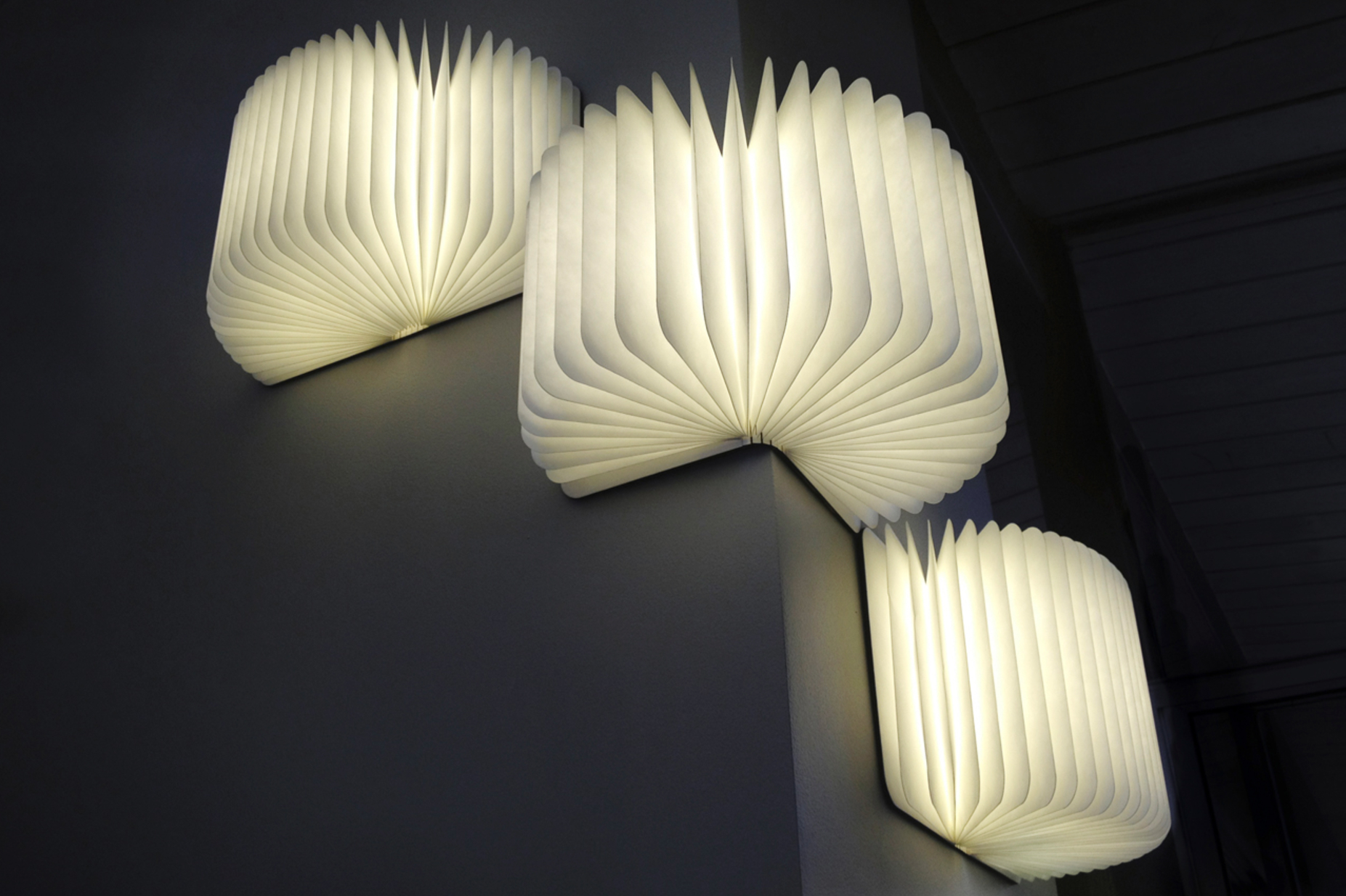 - Applique sous forme de livres ouverts - Excellentes options pour mettre en évidence les escaliers. Un tel appareil peut être utilisé dans la chambre à coucher - en tant que source de lumière pour la lecture.