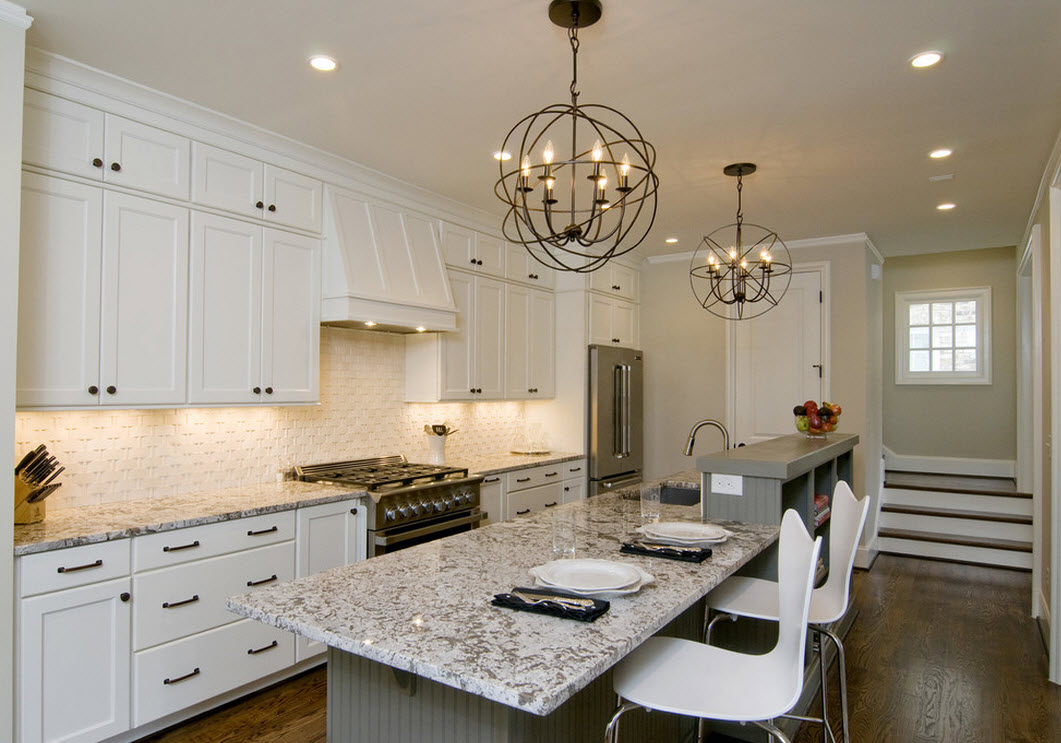 - Dans la cuisine Ces lampes sont généralement utilisées pour éclairer l'île ou le bar. Pour cela, beaucoup optent pour des options de suspension.
