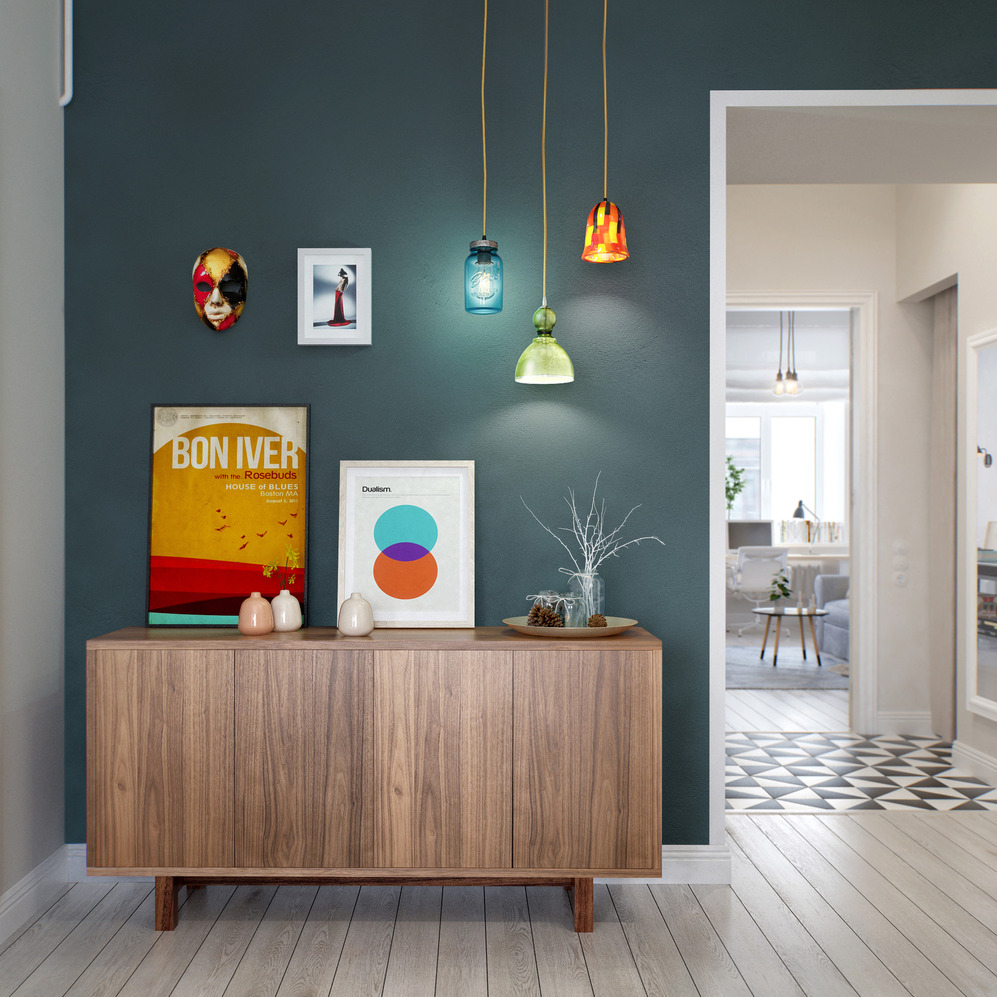 - Même dans le couloir il y a une place pour un instrument qui a une forme inhabituelle. A peine entrés dans l'appartement, les clients comprendront que des personnes inhabituelles y vivent.