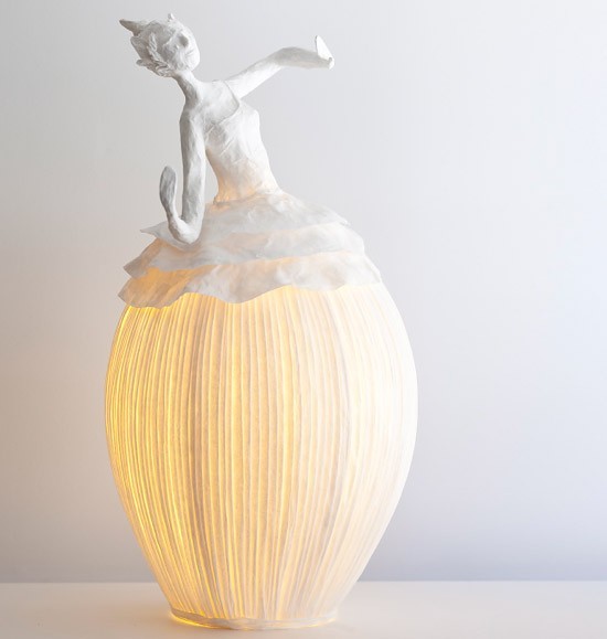 - Lampe intéressante faite sous la forme d'une dame du moyen âge. Le plafond de cet appareil est constitué du papier le plus fin qui diffuse parfaitement la lumière.Cet article de créateur sera une excellente décoration pour une chambre de fille.
